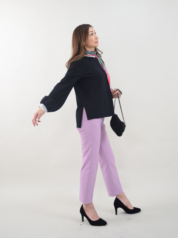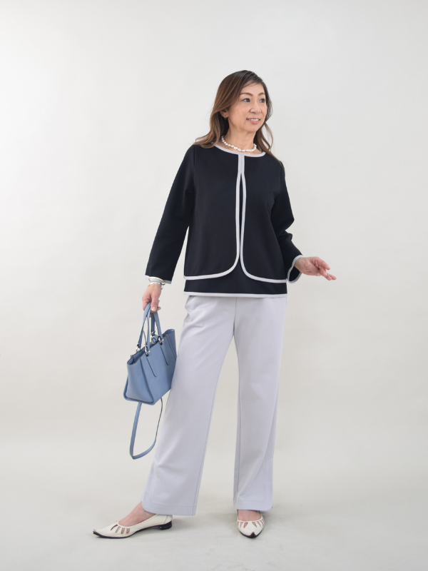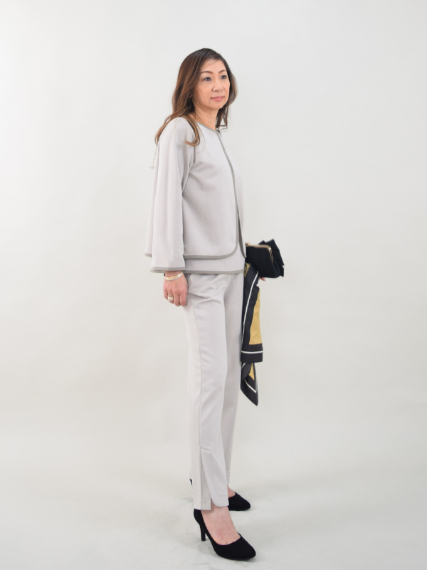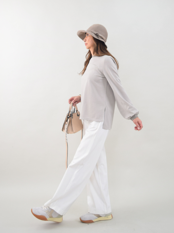 上質大人カジュアルから、スタイルアップエレガンスまで幅広く展開。柔らかさの中に漂う上質さ。